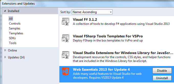 4 - نصب ابزارک Web Essentials در ویزوال استدیو از منوی Tools > Extentions And Update , همانند شکل زیر :