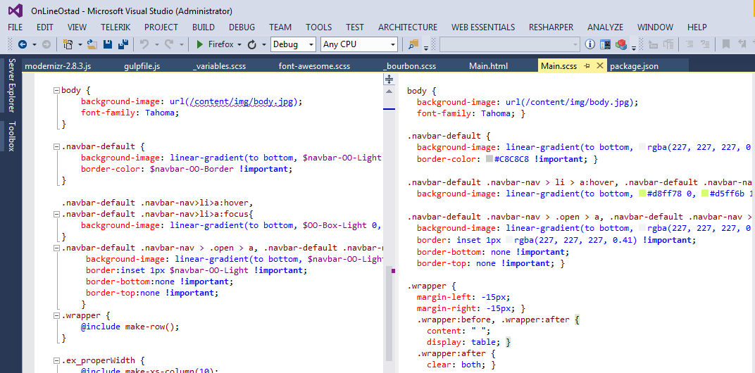این ابزار برای طراحان و برنامه نویسان وب در ویژوال استدیو بسیار مفید است و توانایی های مختلفی دارد , اما موردی که در این مقاله مورد نیاز هست, کامپایل SASS به CSS می باشد .