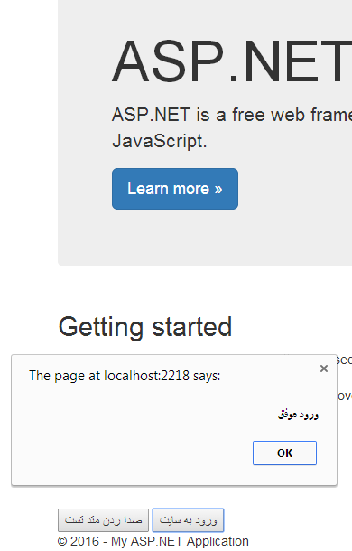 7.4 - و اما مرحله نهایی , افزودن متد Login به صورت Ajax و صدا زدن مجدد متد تست و دریافت نتیجه بدون خطا به شکل زیر (خطوط با کامنت نشخص شده افزوده گردد) :